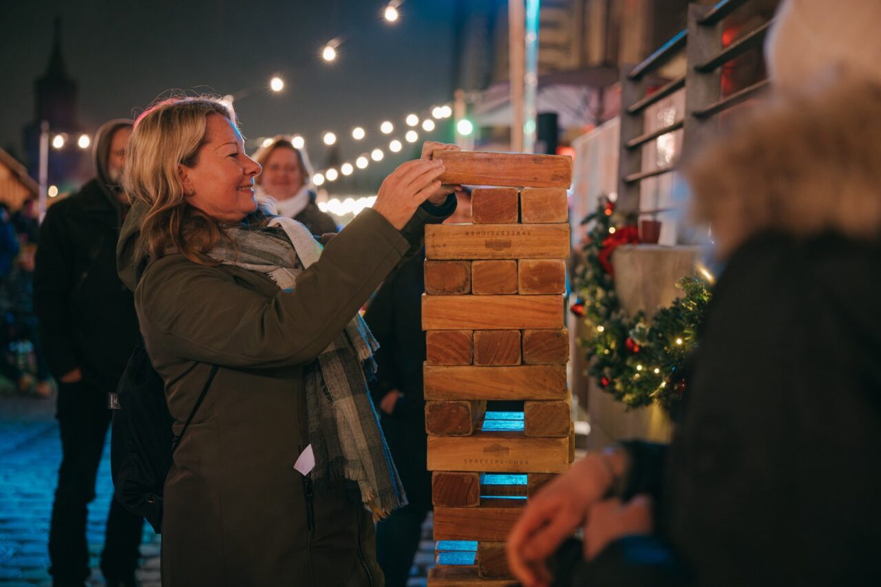 Neben dem Duft von Glühwein und gebrannten Mandeln, dem sanften Glitzern der Lichter und der festlichen Musik sorgten unsere XXL-Jenga-Spiele für viele strahlende Gesichter.